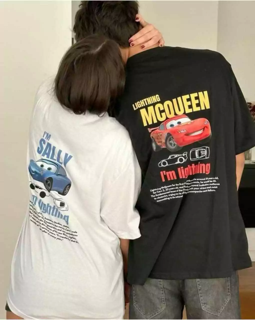 1 remera con estampado de Rayo (Negra) + 1 remera con estampado de sally (Blanca)